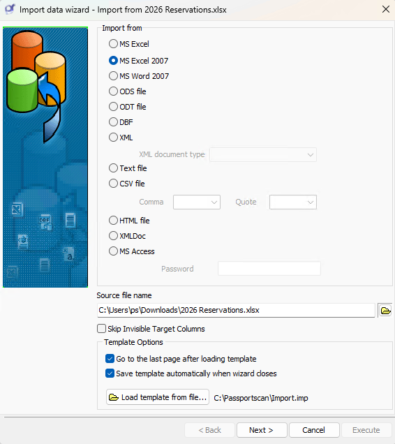 The PMS Reservation Import Wizard enables a quick and repeatable method to import large volumes of reservation data from your PMS into PassportScan. Once a template is configured, future imports can be completed in just a few clicks with consistent accuracy.