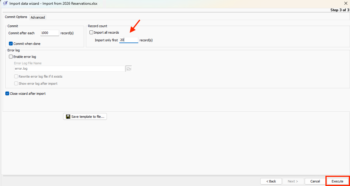 Import only first… (enter a number, e.g. 20, for testing purposes)