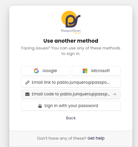 With this update, each user is now fully responsible for managing their own PassportScan Cloud access. The login process is now handled by a dedicated, enterprise-grade authentication platform, designed to ensure maximum security, privacy, and reliability.